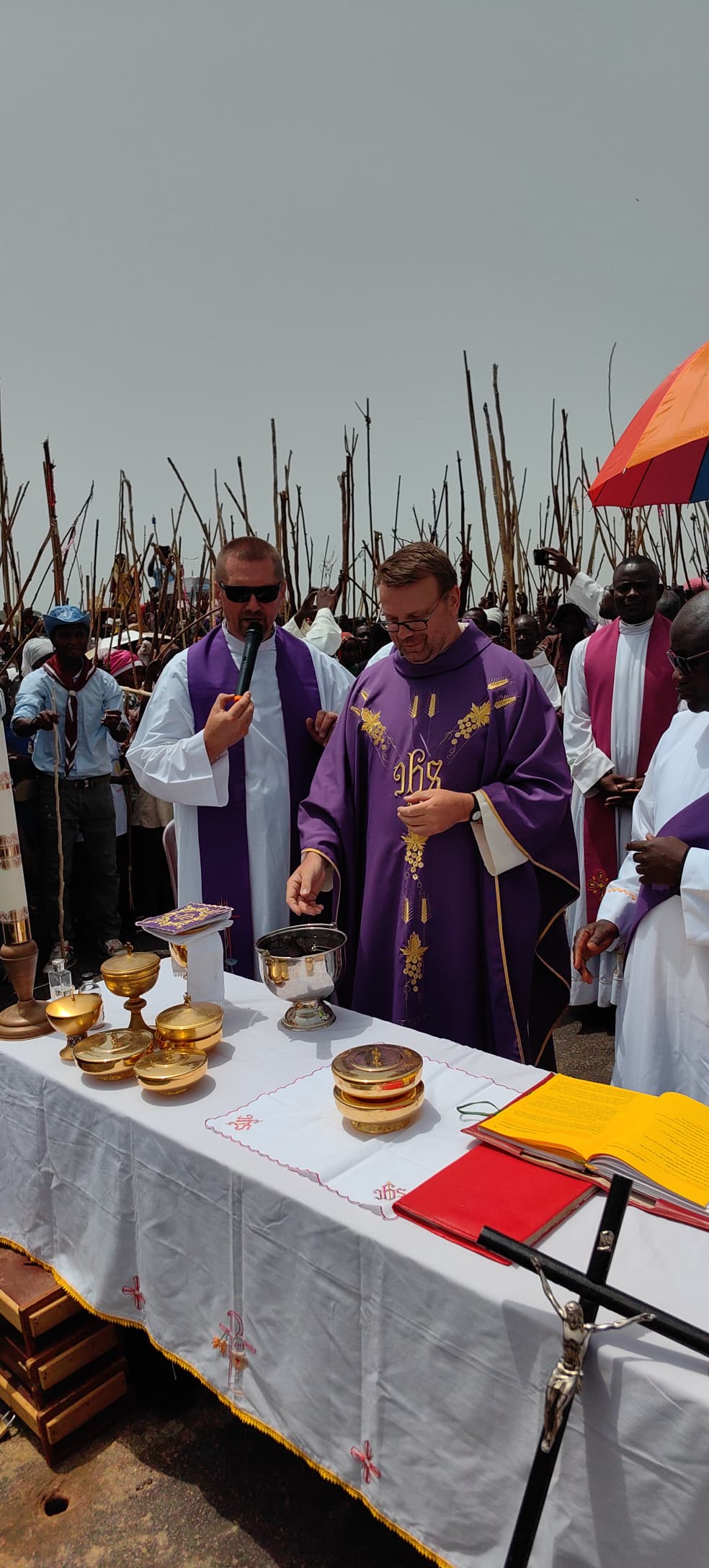 Nasza afrykańska Góra Synaj to skalne wzniesienie, na którym nie ma ani jednego drzewa. Przy palącym afrykańskim słońcu ludzie z powagą chłonęli Słowo Boże przepowiadane w konferencji, uczestniczyli w modlitwie różańcowej, w rozważaniu Drogi Krzyżowej i oczywiście w Eucharystii. W trakcie modlitwy różańcowej (wszytkich tajemnic Różańca Świętego) wierni mieli możliwość pojednania się z Bogiem w sakramencie pokuty i pojednania przez posługę kilkunastu kapłanów diecezjalnych i zakonnych. Na zakończenie Eucharystii kapłan święcił krzyże, różańce, obrazy, wodę oraz nieodzowne w pielgrzymce "laski pielgrzyma" - na wzór "laski Mojżesza", przypomnienie prowadzenia przez Boga oraz pasterskiej troski o lud.
